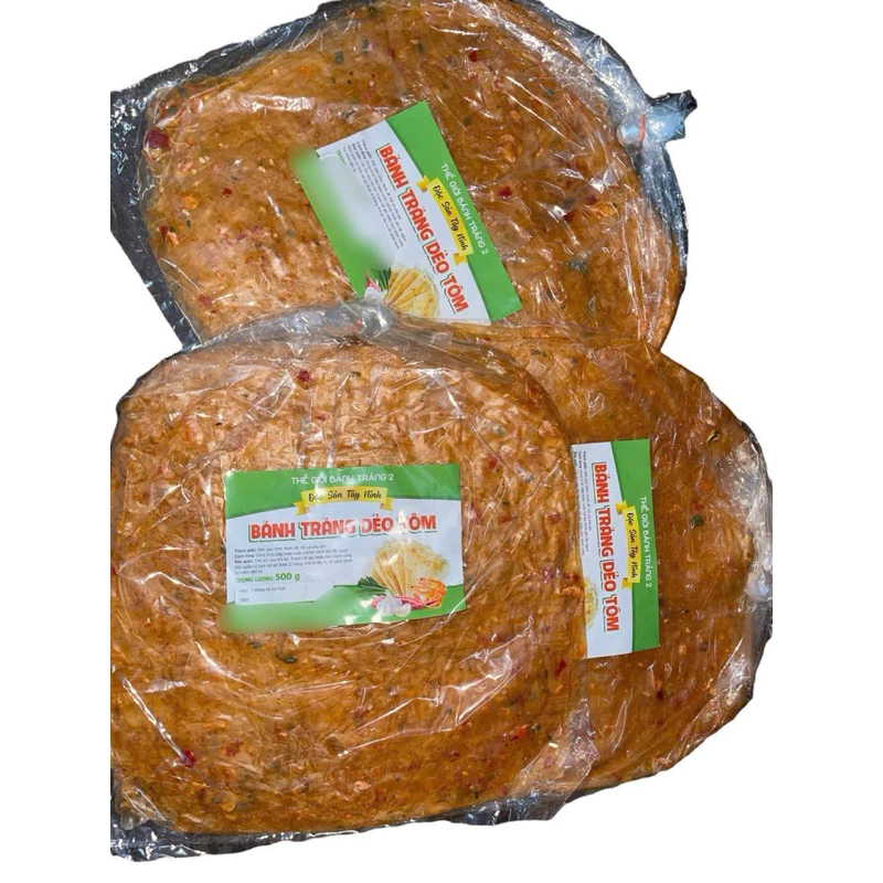 Bánh tráng dẻo tôm đặc sản Tây Ninh được đóng gói trong bịch theo sấp 500gr, ăn rất ngon, hay được du khách và mọi người mua ăn. Quý khách có thể dùng ngay trực tiếp hoặc cuốn bơ , hay cuốn hành phi hay nướng trên lửa than cho giòn. Thật hấp dẫn phải không nào?
