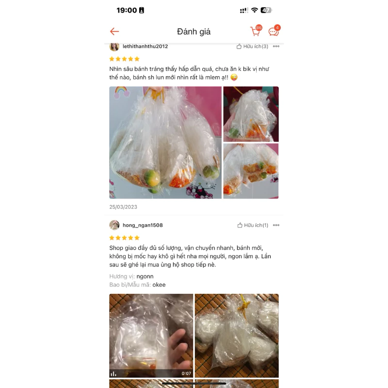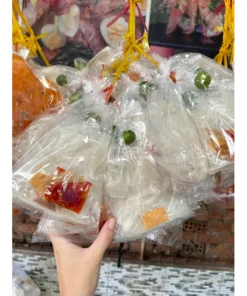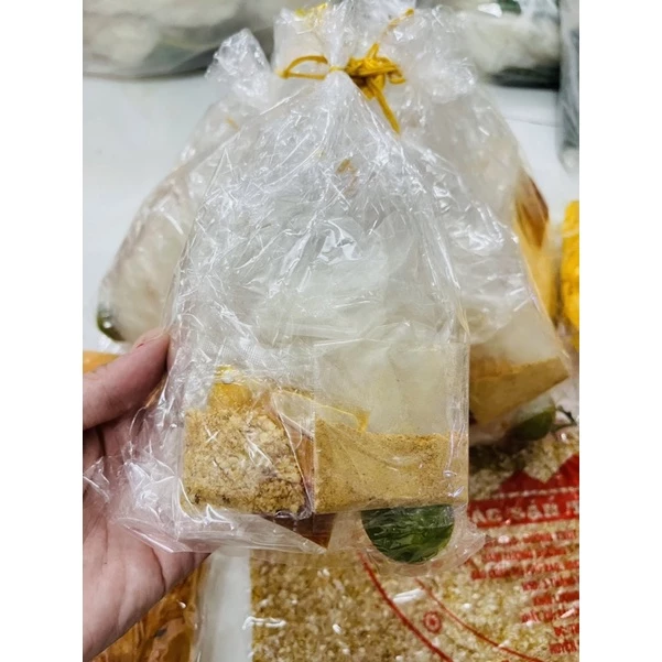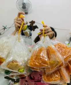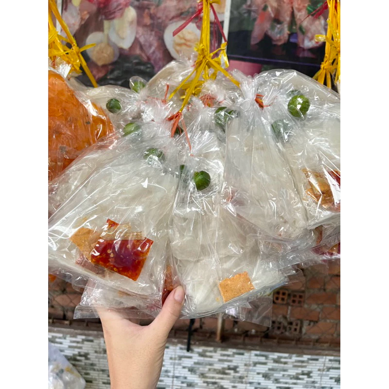 mỗi bịch gồm gia vị muối tôm, sate, tỏi phi, tắc