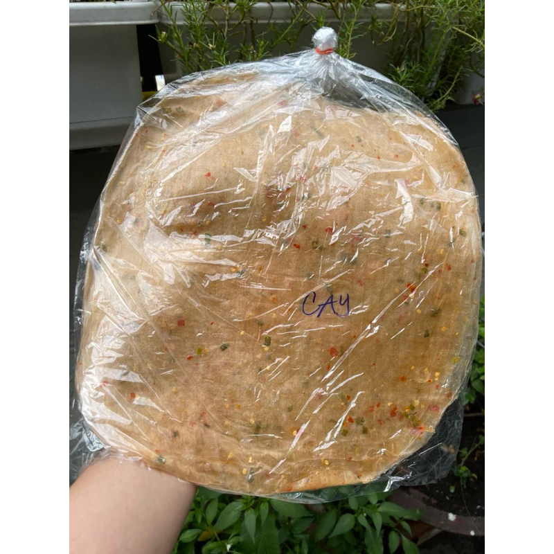 BÁNH TRÁNG DẺO CAY : Thành phần: Bột mì, đường, muối, hành, tỏi, ớt. có độ cay cao nha khách! 1 xấp tầm 8-10 bánh ạ. Bánh được xếp khít trong bịch kín nilon có vị cay đặc trưng của ớt và thơm của hành tỏi hòa quyện với sự mềm dẻo của màn sương tạo nên vị ngon khó quên chay mặn đều dùng được
